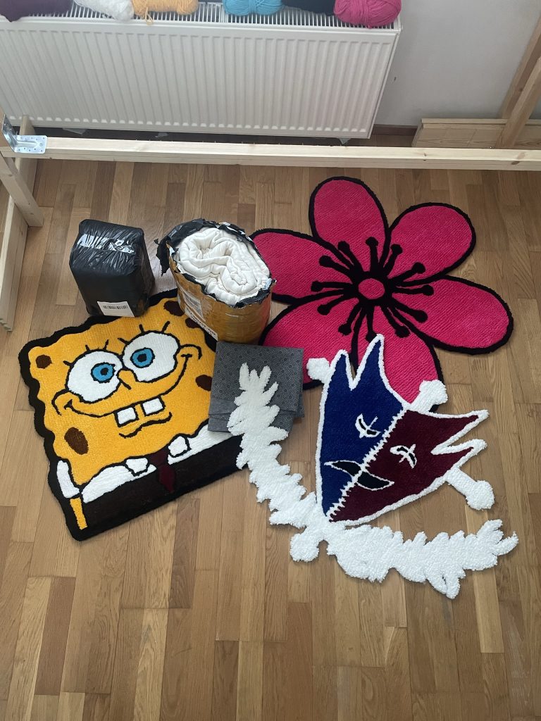 Teemme custom- mattoja juuri sinun toivomallasi designilla! Teemme matot alusta loppuun itse käsityönä akryylilangasta😁 Jos haluat saada hinta-arvion haluamallesi matolle, voit laittaa meille kuvan designista, sekä haluamasi koon matolle sähköpostilla osoitteeseen tuftzen@gmail.com tai viestillä nro. 0443629499.😊