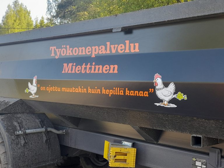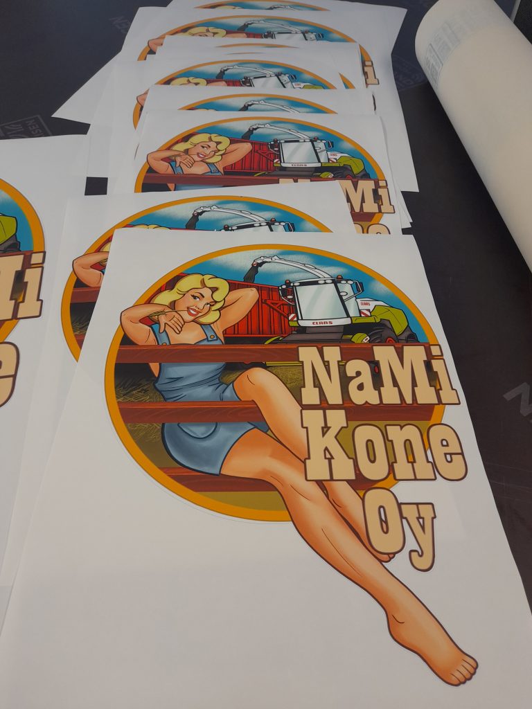 Vaatteet työhön ja arkeen omilla painatuksilla, kyltit ja magneettikyltit autoihin, koneisiin ja metallipinnoille, tuulibanderollit, kaikenkokoiset tarrat ja teippaukset ikkunoihin, autoihin ja koneisiin.
